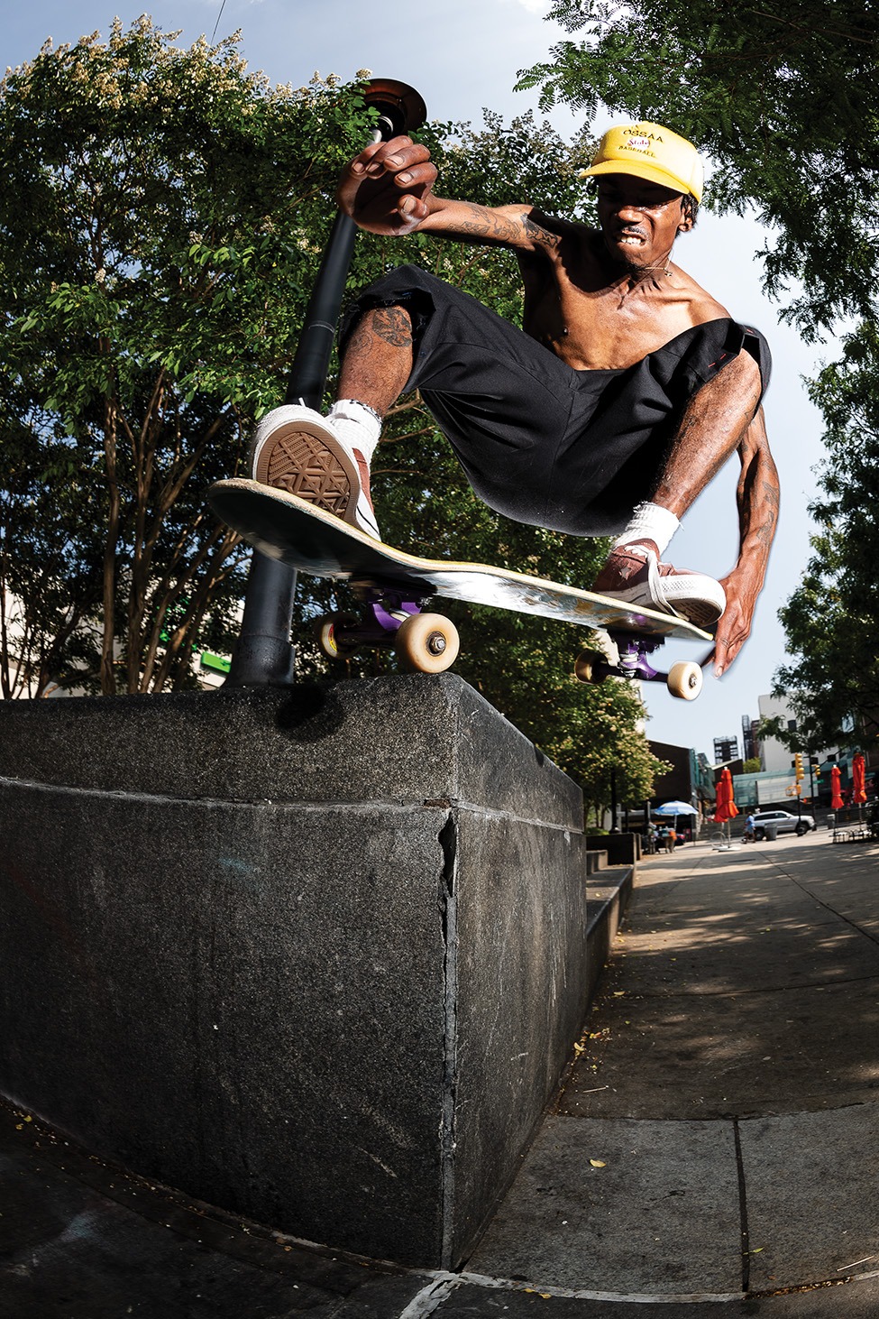 I started skating in the suburbs and just skated my cul-de-sac for years. My mom moved to a neighbourhood closer to NC State, where the neighbourhood kids would always tell me about a miniramp they’d party and skate through the night at. One day I broke a bearing, I had never been to a skate shop so I went to said house. It ended up being Jed Shooter’s miniramp and they pretty much took me from then. A lot of my perspective/taste in skating comes from them and their era. Being into shaped boards comes from being a fan of early-era street skating, living with Nolan Johnson watching him hand carve boards for SCRAM, and seeing Erick Winkowski skate in person as well as his street footage. A 50-50 on the same ledge feels different on a shaped board. I feel like riding new shapes and having certain tricks work for each one keeps skating interesting and exciting for me.